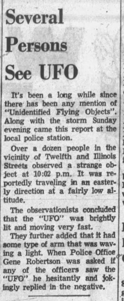 A dozen people saw a UFO during a storm in August of 1971. As for the police, the laughed it off. Below is the clipping from The Times (Streator, Illinois).