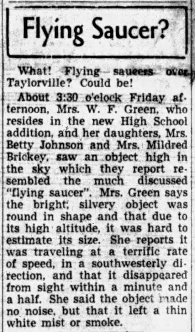 Flying Saucer with maybe green men, seen by Mrs. Green